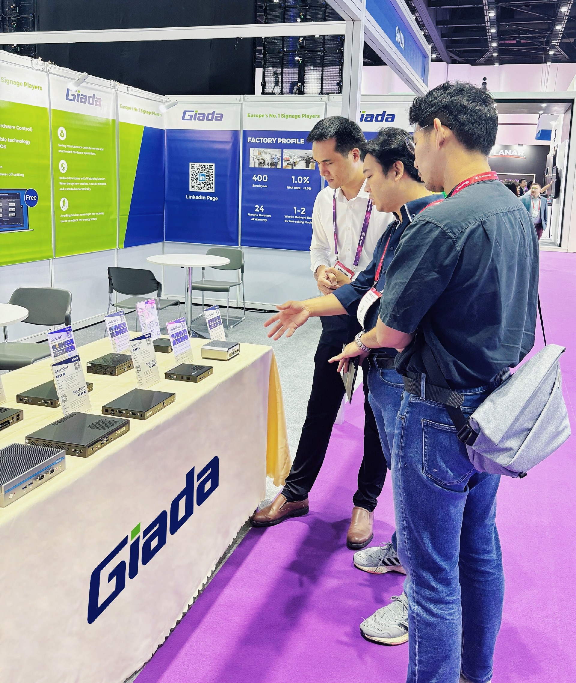 除此之外,Giada米兰·(milantiyu)科技展示一系列数字标牌播放器、户外嵌入式整机、OPS/SDM及嵌入式主板等明星产品,并带来一系列量身定制的解决方案,以满足东南亚地区的具体需求。
