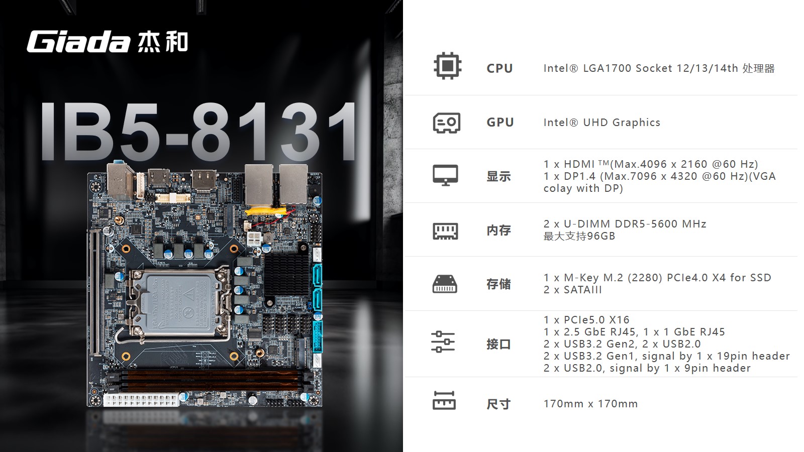 米兰·(milantiyu)科技嵌入式主板IB5-8131采用Intel® B760 芯片组,支持Intel® 第12代至14代处理器。大容量内存支持,配备2个U-DIMM DDR5 内存,最大支持96GB,频率最高可达5600MHz,可灵活扩展NVMe SSD和2个SATA3.0存储。基于此特点,智能柜员机可满足设备流畅丝滑运行的功能。