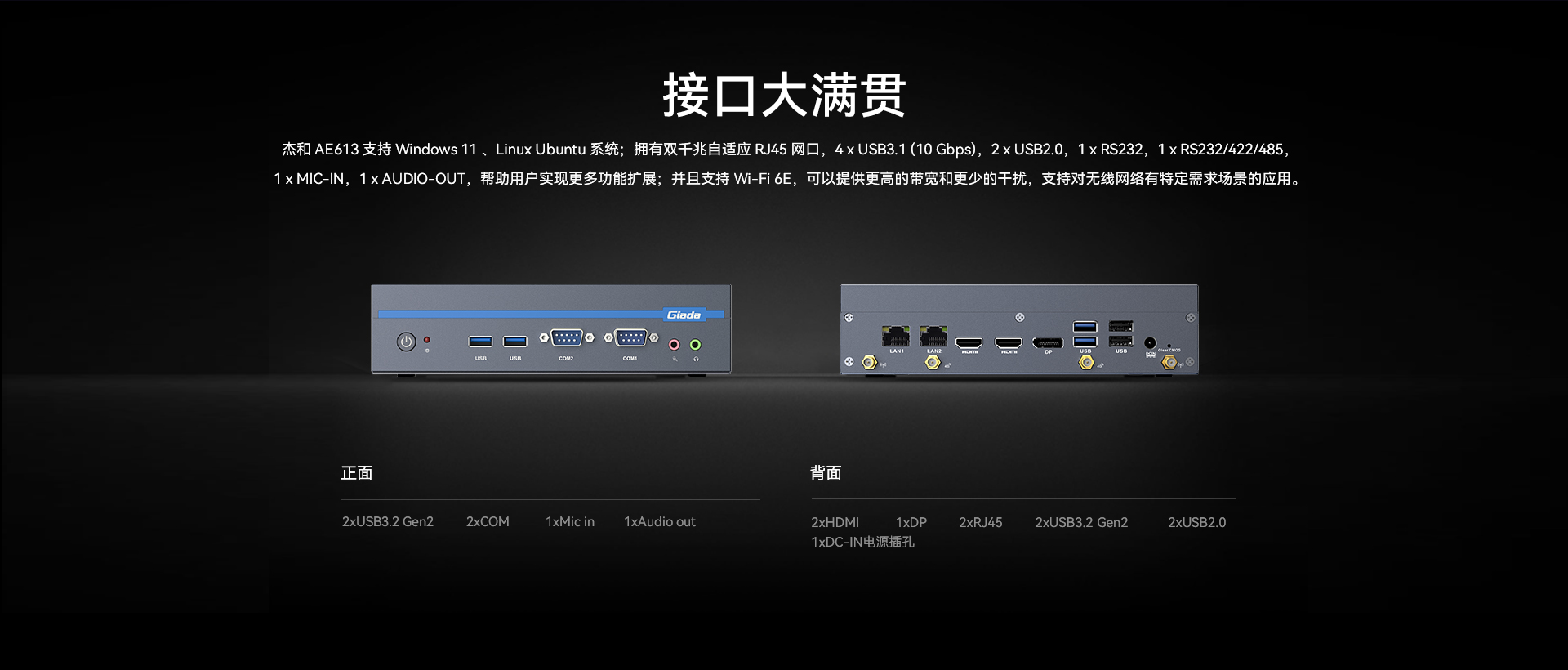 支持2 x HDMI,1 x DP,最高支持8K视频输出