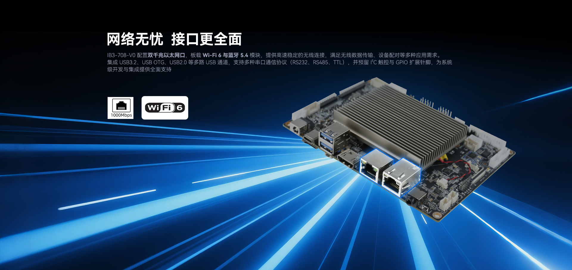 2 x RJ45,板载Wi-Fi/BT模块